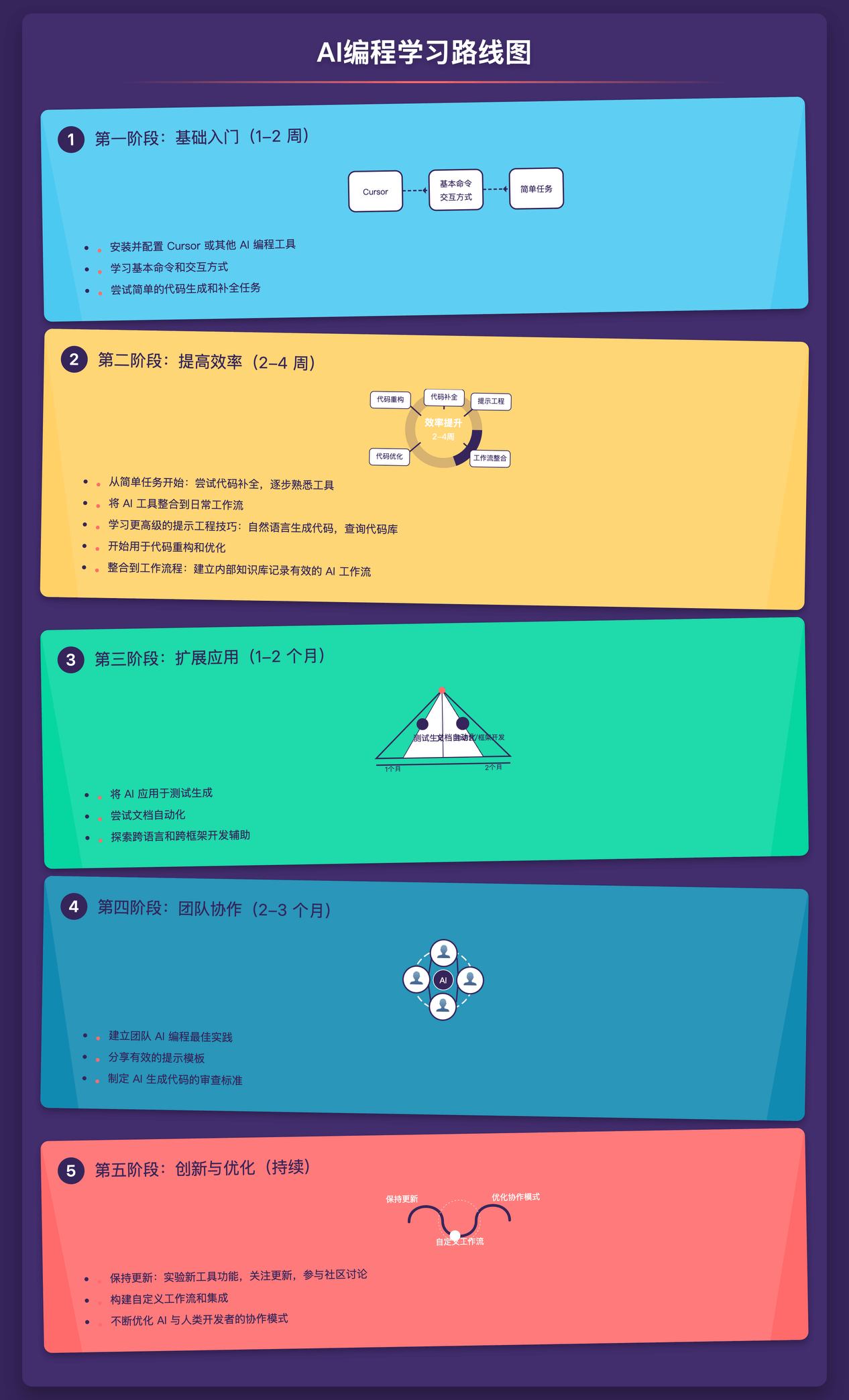 不管是从头开发一个新项目还是从大型项目中迭代新功能,我会拟定一份对应需求文档,先让 AI 通过记忆去分析输出实施计划。计划中每个步骤都是能够完成并可测试的,完成后让 AI 更新记忆,如此循环直到需求完成。
